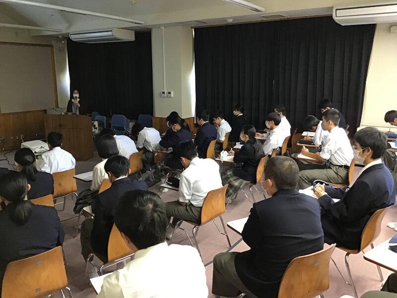 11月14日(火)3年生の家庭科の授業では、赤ちゃん交流体験の事前指導として、ことり助産院さんよりお話をいただきました。赤ちゃんの誕生には、奇跡的なことや命の大切さ等について生徒達は、学ぶことができました。
