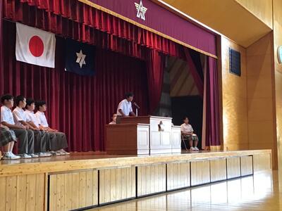 各部から大会に向けての意気込みを話を聞きました。素晴らしいと思いました。1、2年生にとって、不安があると思いますが頑張ってきてください。