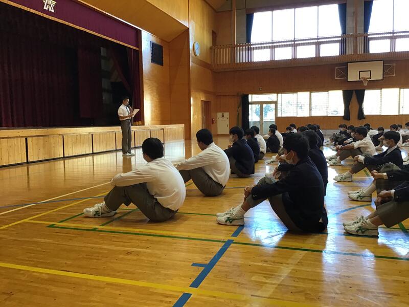集会では、はじめに、生徒会長から、リサイクルの目的や回収方法、注意事項について連絡がありました。