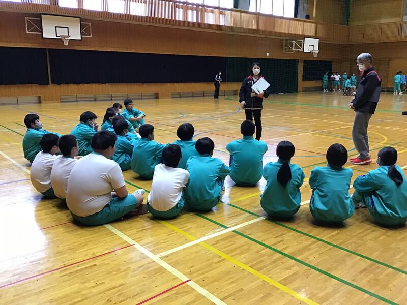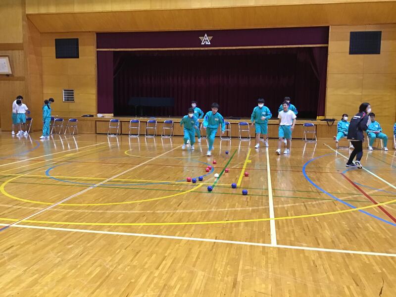 11月16日(木)2年生が、総合的な学習の時間で、前回に引き続き、福祉体験活動の一環として、車椅子バスケットボール、ボッチャを体験しました。