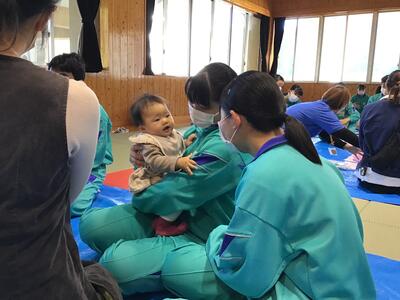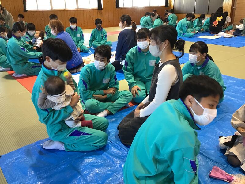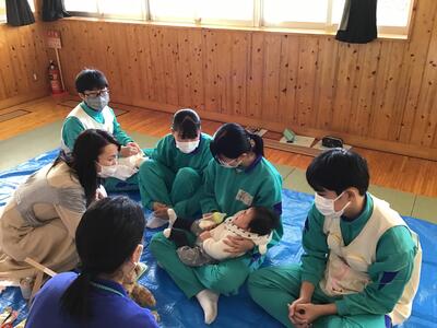 赤ちゃん交流体験は、実際の赤ちゃんと触れ合うことで、発達段階を知ったり、対応の仕方を学んだりすることを目的に行われています。