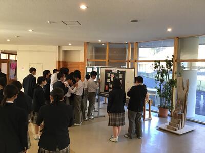 図書委員会が中心に企画し、11月1日までに図書委員が集めて、15日から優秀作品を展示しています。