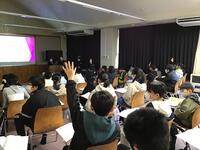 粟野中学校に入学することを楽しみにしてもらうために、中学校の決まりなど小学校と異なることをクイズ形式にした、説明会を行いました。その後、授業を参加したり、体育館にて交流ゲームを行いました。