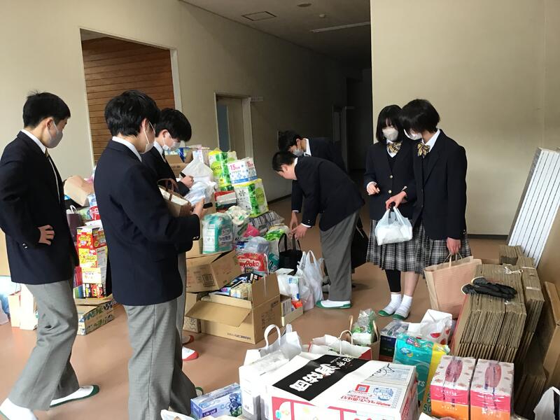 明日は、ボランティアを希望している生徒達により、10時から支援物資の仕分け作業を行います。