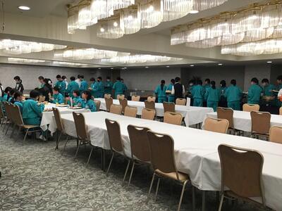 部屋ごとに朝食をとりました。栄養のバランスを考えている生徒、野菜を取るようにしている生徒、果物中心な生徒、炭水化物中心な生徒等様々です。皆さん、たくさん食べていました。