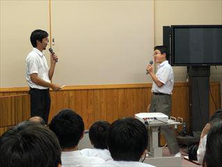 市の健康課職員による喫煙防止教室が行われました。喫煙による被害と中毒症状などを学びました。後半には知人や先輩から勧められたらどう断るかを実演しました。