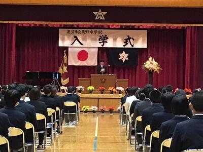 新入生代表の生徒が、中学校への目標として次の3つ立てあいさつとしました。