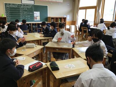 2年生は、1日がかりのテストが終わり、学級活動。年度始めの「人間関係づくり・学級づくり」、トランプゲーム進め、グループで大盛り上がりでした。