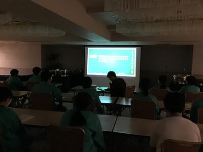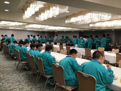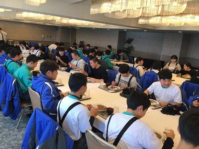 部屋ごとに朝食をとりました。栄養のバランスを考えている生徒、野菜を取るようにしている生徒、果物中心な生徒、炭水化物中心な生徒等様々です。皆さん、たくさん食べていました。