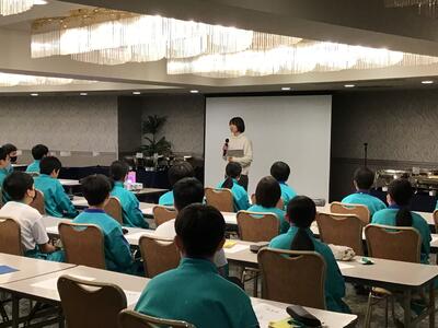 実行委員長から、「1週間前から、立志に向けての誓いの言葉を意識して行動してきました。この2泊3日も、意識をしながら、生活をしていきたいと思います。」と、お世話になる方へ挨拶をしました。