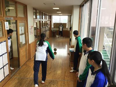 事前に細かなルール等を教室で周知して、柔らかいソフトバレーボールを使い怪我等に留意しながら、試合に臨む生徒たちは、一生懸命に、そして楽しそうに競技を行っていました。