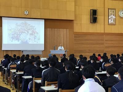質疑応答の時間では、生徒から寄せられた多くの質問に対して、先生が一つ一つ丁寧に答えてくださりました。