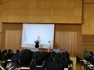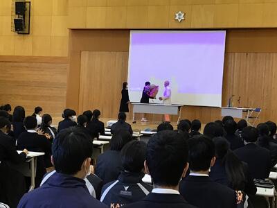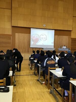 生徒からは、「いろいろな薬物があることは知っていたが、身近にあるとは思っていなかった。もし、勧められても勇気をもって断りたい。」、「依存症というのは、ブレーキの壊れた車みたいなもの、という表現がとてもわかりやすかった。絶対に手を出さないようにしたい。」などの振り返りが見られました。
