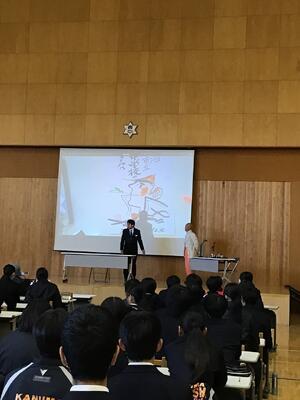 今までマンガを描いていて良かったと思うことや、座右の銘、マンガ家として物事を見る際に工夫している点など、普段はなかなか聞くことのできないお話に、生徒たちは真剣に耳を傾けていました。質問に答えていただく中で、創作の楽しさや一つのことを続けていく努力の大切さを学ぶことができ、生徒たちにとって大変貴重な時間となりました。