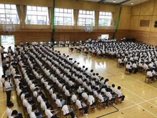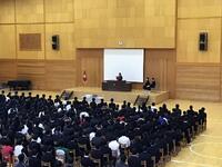 学校長から、「希望や目標の達成に向けて努力してほしい。」、「α(アルファ)世代では、いろいろな生き方、生活様式がある。この世代の特徴や強みを活かして頑張ってほしい。」という話が生徒に送られました。