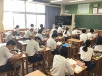 生徒からは、「3年生になって初めてのテストで緊張した。」、「難しかったけど、できる限り答えることができた。」などの声が聞こえてきました。