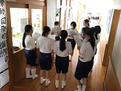 合唱コンクール実行委員を中心に、放課後や音楽の時間を使い、あれこれと悩みながらも、学級で協力しながら良い合唱をつくろうと毎日一生懸命練習に励む生徒の姿が見られます。