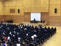 また、終業式後には鹿沼警察署上野町交番署長の田邉様をお招きし、冬休みの過ごし方の注意点をお話ししていただきました。①非行の防止について②SNSの利用に気を付けること③交通事故防止について、の3つの話に、生徒は真剣な表情で聞いていました。