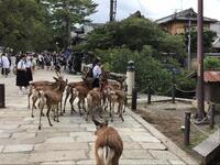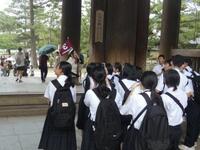 1日目は、京都から奈良へ向かい、学級ごとに研修を行いました。奈良公園では、大仏殿の大きさに感動し、生まれて間もない鹿と触れあい、暑さもある中、楽しそうに研修を行いました。