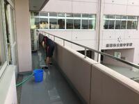 外では、校舎や体育館周りの除草作業と、テニスコート周りの側溝の清掃を行いました。校内では、普段ではなかなか清掃ができないベランダを清掃しました。
