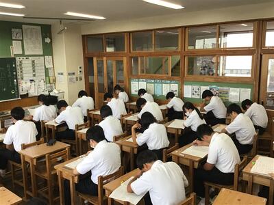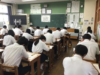 1、2年生は緊張した面持ちでしたが、テスト前は自身のペースで勉強するなどし、落ち着いてテストに臨むことができました。