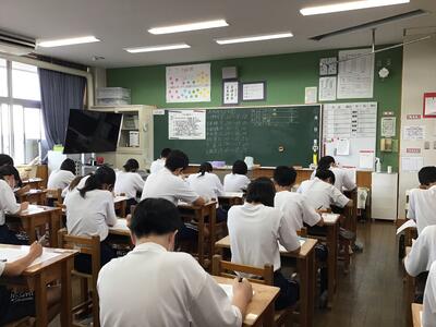 授業参観は2回目となりましたが、生徒は少しいつもと違う雰囲気の中、緊張した面持ちで授業を受けていました。