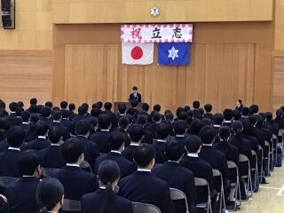立志式では学校長の祝辞、記念品の授与、知事メッセージ、生徒代表による意見発表、クラス全員による「立志 クラスの合い言葉」の発表を行いました。代表生徒もクラス全員の発表も大きな声で堂々と発表し、立志を迎えるにあたっての強い意志を表明しました。