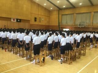 また、約3年ぶりに再開した全校生徒での校歌斉唱。この日のために各学級で練習してきたこともあり、思いのこもった歌声が、体育館中に響き渡りました。