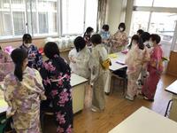 初めての生徒も多く、なかなか上手くできずに周囲に聞いたり手伝ってもらったりしながら、協働して浴衣を着ることができていました。浴衣を着た生徒の表情は、とても明るく輝いていました。