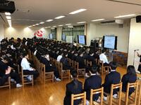 また、終業式後には鹿沼警察署上野町交番署長の田邉様をお招きし、冬休みの過ごし方の注意点をお話ししていただきました。①非行の防止について②SNSの利用に気を付けること③交通事故防止について、の3つの話に、生徒は真剣な表情で聞いていました。