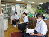 午後、校医さんによる眼科検診を行いました。コロナ対策として、生徒は下瞼(したまぶた)を自分の両指で下げ、校医さんに診ていただきました。