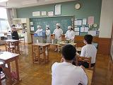 学校再開前の3回目の登校日になりました。今日は、1校時~3校時までは教科の授業でした。4校時は、市役所並びに鹿沼警察署の担当の方、板荷駐在さんの3名による交通安全教室を実施しました。約15分の安全な自転車利用に関する講話と30分程度の自転車を使った実技でのルールの確認を行いました。実技を始まる前には、今週スタートした教育実習を行っている本校卒業生による「悪い運転例」と「正しい運転例」の演示がありました。