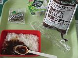 今日 9月1日は防災の日です。給食の献立も今日は「防災給食」となりました。長期保存可能なレトルトのシチューでした。ほかに、牛乳、ごはん、ヨーグルト、小魚の味付乾物でした。
