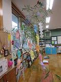 ボランティアさんの協力で作成されました「七夕飾り」願い事の短冊をつけました。