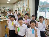 今日、図書ボランティアのKLV(カリブ)さん4名と本校の図書支援員の5名の方が図書室に「七夕飾り」をつくっていただきました。ありがとうございました・
