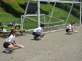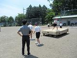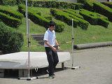 今日から教育実習生の授業が始まりました。実習生は保健体育科で実習をしています。今日の授業は「陸上競技の高飛び」です。用具の説明やヶが予防の説明を行った後に、2カ所に分かれて活動を始めました。今日の最高記録は130センチでした。