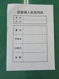 帰りの会後、食堂で行いました。自分で読みたい本やみんなに読んで欲しい本を選び用紙に記入します。生徒が選んだ本も参考に図書室で購入する本を決めています。