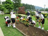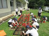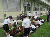 今年度 1回目の愛校の日の活動を行いました。サルビア、日々草、マリーゴールド、ベコニアの4種類の花を3カ所の花壇とプランターに移植しました。美化奉仕委員会を中心に各委員会ごとに担当場所に花を植えました。