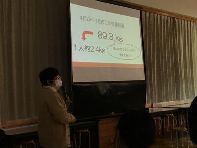 板荷中は鹿沼市では給食の残量が平均と比べると少ない方ですが、年間で一人あたり2.4Kgを残す計算だそうです。これが、多いととるか少ないととるかを考えてほしいと投げかけられました。
