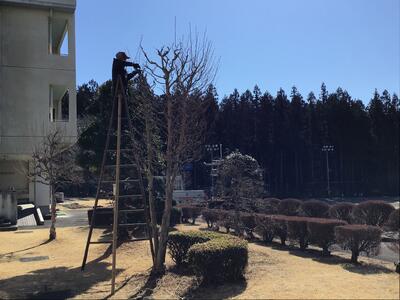 2/22(土)に、地元の業者さんに校舎周りの庭木の剪定を行っていただきました。ボサボサ気味だった庭木も、しっかりと形を整えて、春を迎える準備が整ってきました。