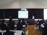 学校薬剤師の先生を講師にお願いして、薬物とは何か、薬物は法やルールのもと正しい使い方をすることが大切なこと、未成年者に与えるアルコールやたばこの影響等について具体的な話をいただきました。