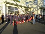 校舎内で火災が発生したことを想定した訓練を帰りの会後から実施しました。全員の避難完了は約1分30秒です。訓練に際しては、消防署の署員の方による協力と助言をいただきました。