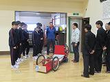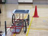 この日、3年生が機械と制御の学習の体験として、ソーラーカーとエンジンカーの仕組みや構造、エンジンの制御などを実物で学習できました。