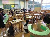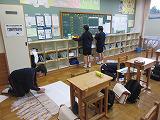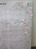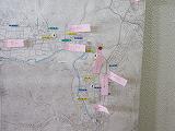 台風20号のよる大きな災害が発生した翌週の10月16日に、各登校班の通学路の状況を確認し、通学路のマップに危険な箇所を掲示しました。各班で期間箇所にその内容を書いた付箋を貼りました。マップは食堂の出入口前に掲示しています。