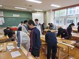 2年生が取り組んでいる「お囃子」ですが、今日も講師2名が来校され、指導を受けました。それぞれがかなり上達をみせています。発表は、やまなみ祭で行う予定です。限られた時間で熱心に活動しています。