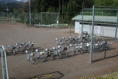今日の午後、交通安全教室があるので、校庭に自転車をとめました。