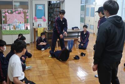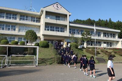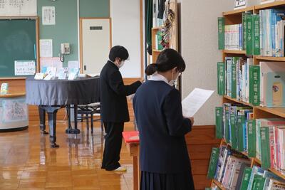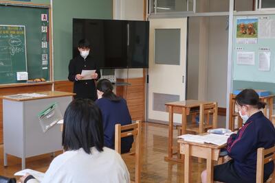 今日の朝の活動は、生徒会役員からの伝達の時間です。