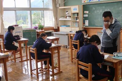1年生 初めての英語の時間です。自己紹介で盛り上がっていました。