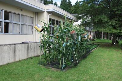 東の花壇に植えたポップコーンが、順調に育っています。