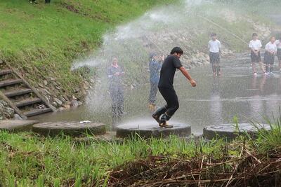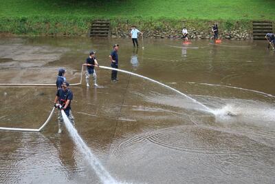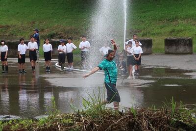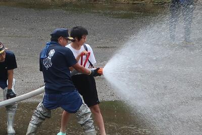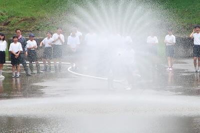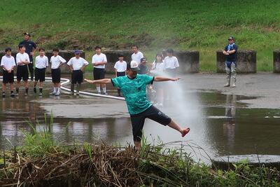 休憩の後、一人ずつ放水体験をさせていただきました。